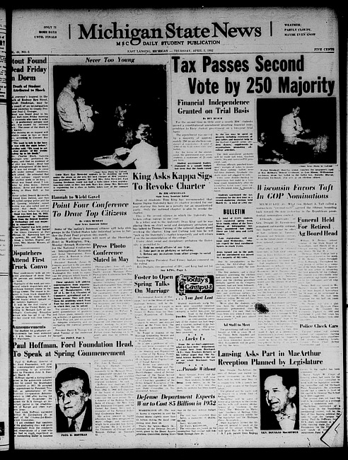 Michigan State news. (1952 April 3)