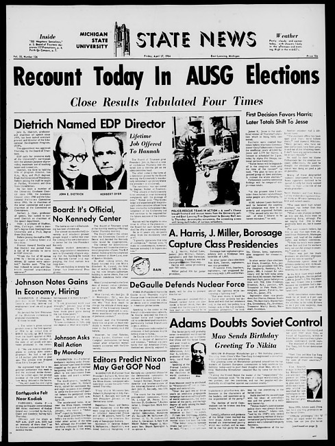 State news. (1964 April 17)