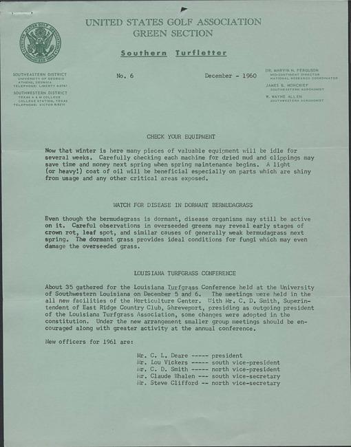 Southern turfletter. Vol. 4 no. 6 (1960 December)