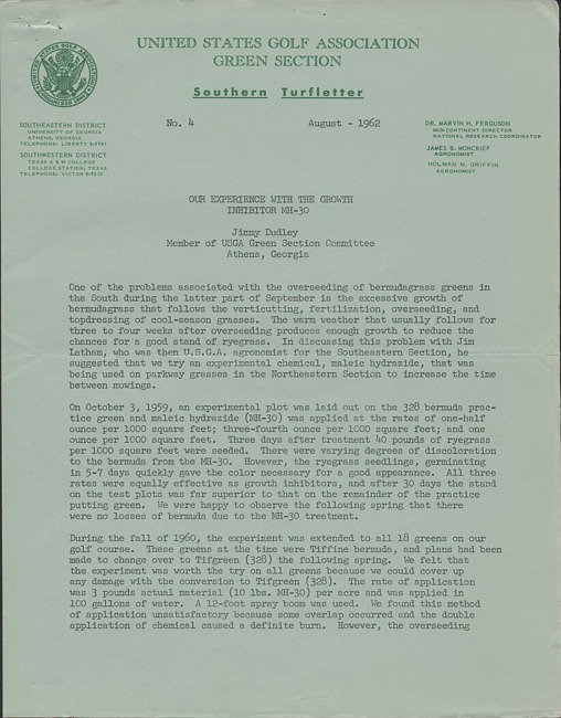 Southern turfletter. Vol. 6 no. 4 (1962 August)
