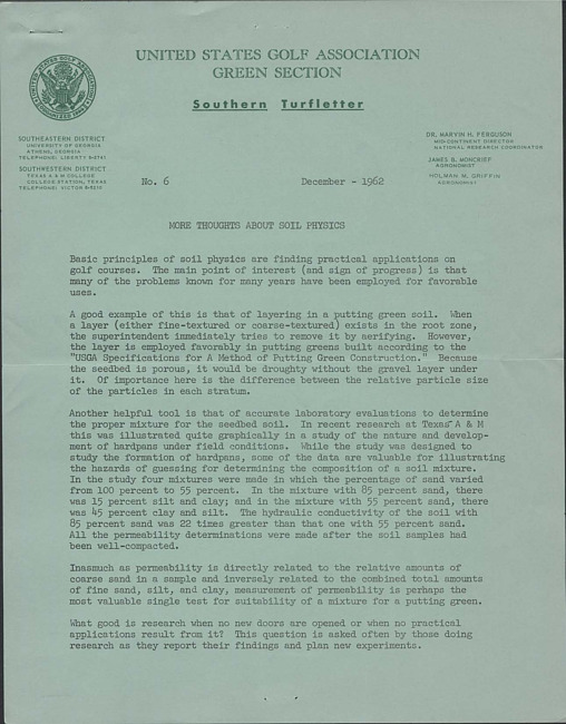 Southern turfletter. Vol. 6 no. 6 (1962 December)
