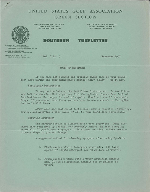 Southern turfletter. Vol. 1 no. 5 (1957 November)