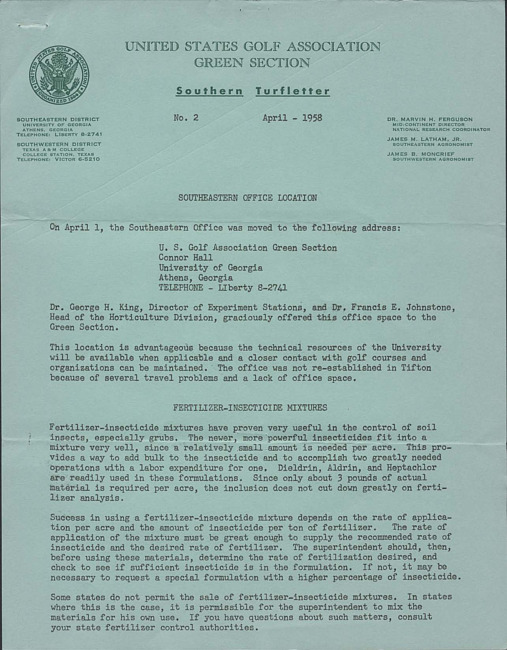 Southern turfletter. Vol. 2 no. 2 (1958 April)