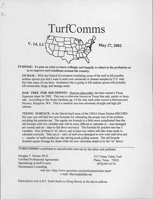 TurfComms. Vol. 14 no. 1 (2002 May 27)