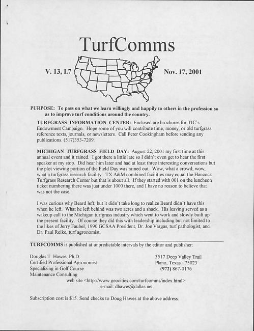 TurfComms. Vol. 13 no. 7 (2001 November 17)