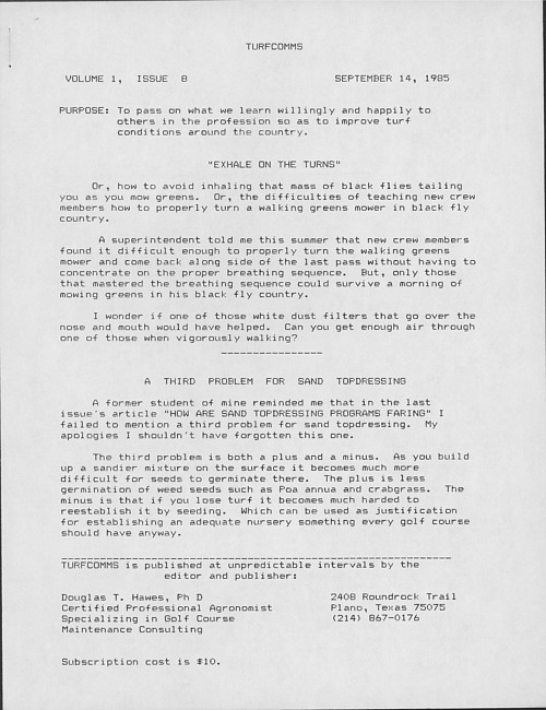 TurfComms. Vol. 1 no. 8 (1985 September 14)