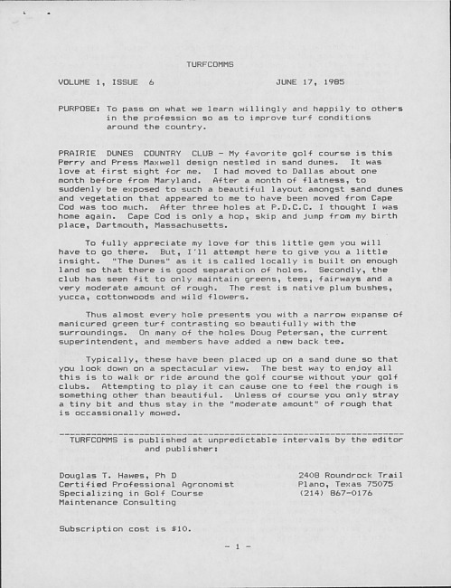TurfComms. Vol. 1 no. 6 (1985 June 17)