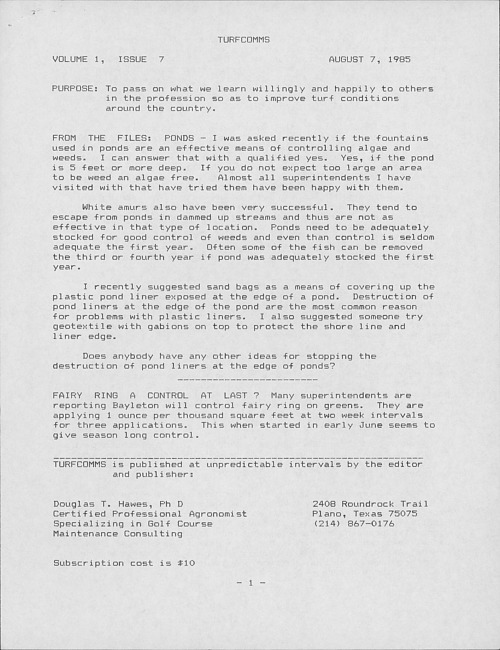 TurfComms. Vol. 1 no. 7 (1985 August 7)