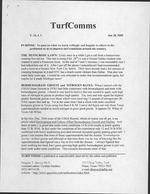 TurfComms. Vol. 16 no. 1 (2005 January 28)