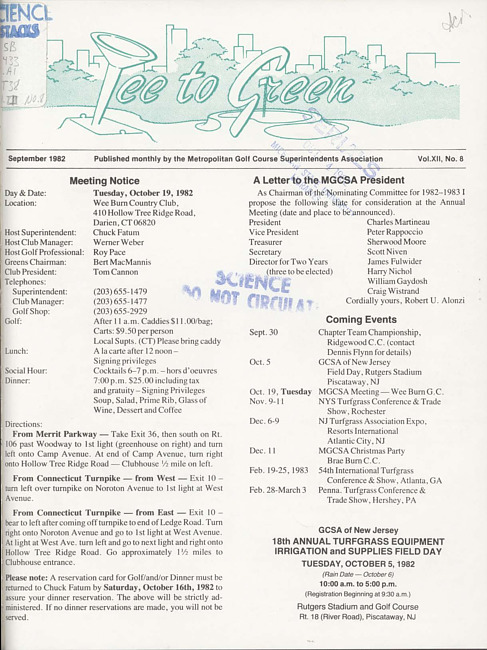 Tee to green. Vol. 12 no. 8 (1982 September)