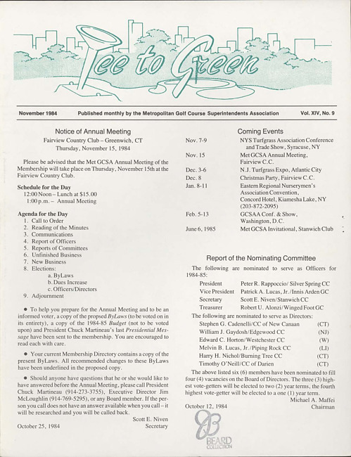 Tee to green. Vol. 14 no. 9 (1984 November)
