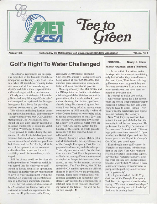 Tee to green. Vol. 15 no. 6 (1985 August)