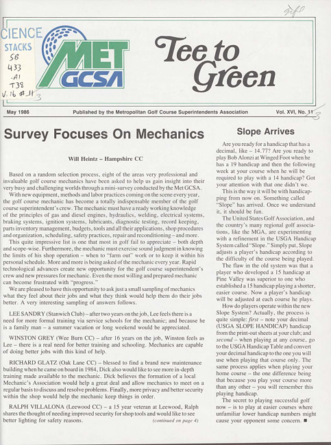 Tee to green. Vol. 16 no. 3 (1986 May)