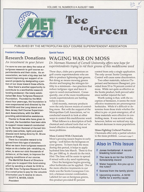 Tee to green. Vol. 19 no. 6 (1989 August)