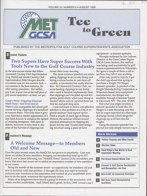 Tee to green. Vol. 20 no. 6 (1990 August)