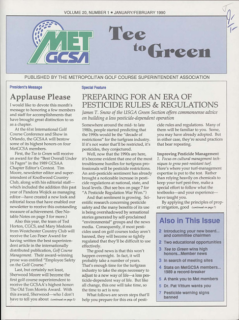 Tee to green. Vol. 20 no. 1 (1990 January/February)