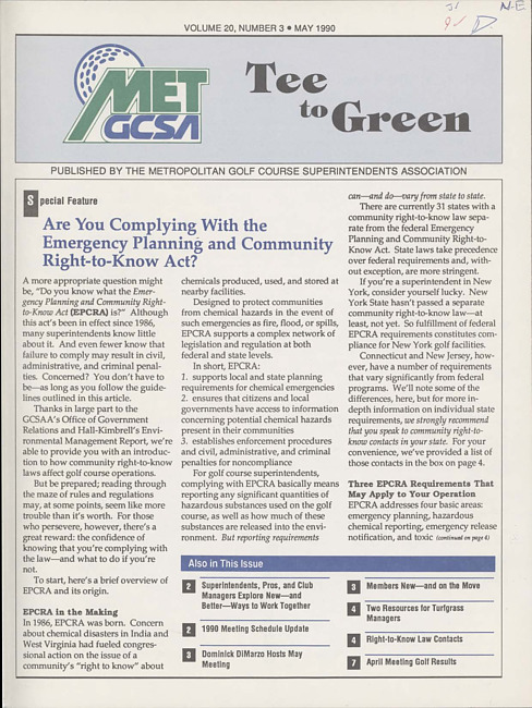 Tee to green. Vol. 20 no. 3 (1990 May)