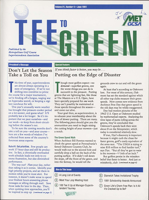 Tee to green. Vol. 21 no. 4 (1991 June)