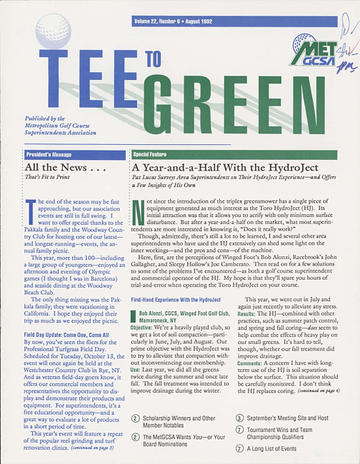 Tee to green. Vol. 22 no. 6 (1992 August)