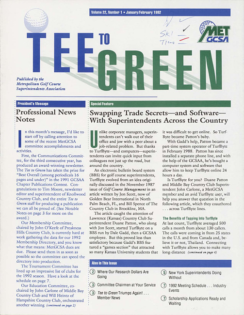 Tee to green. Vol. 22 no. 1 (1992 January/February)