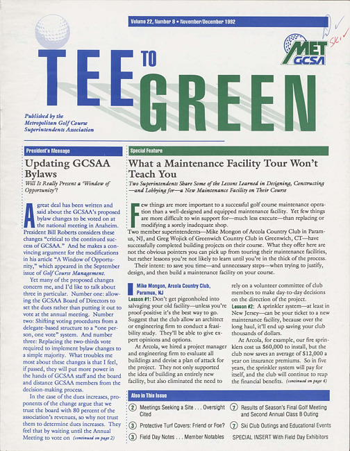 Tee to green. Vol. 22 no. 8 (1992 November/December)