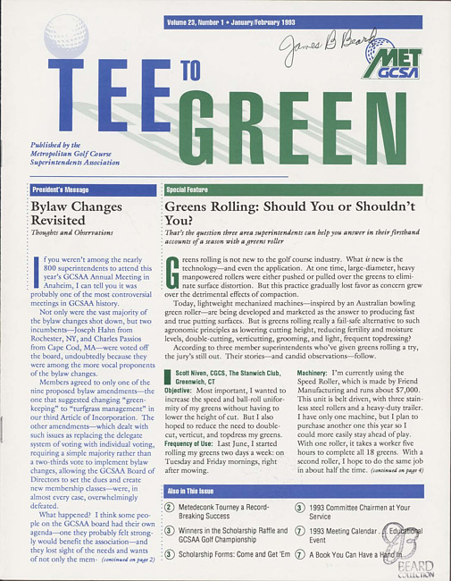 Tee to green. Vol. 23 no. 1 (1993 January/February)