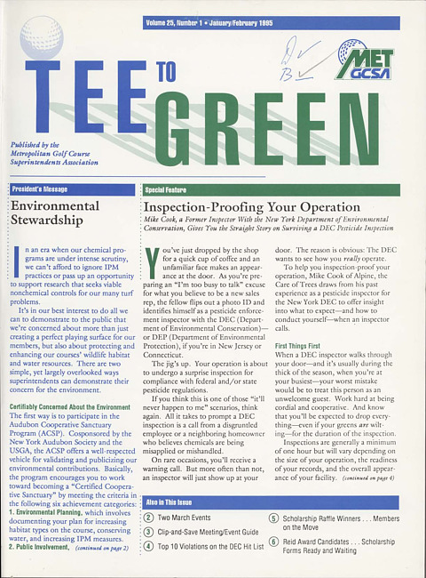 Tee to green. Vol. 25 no. 1 (1995 January/February)