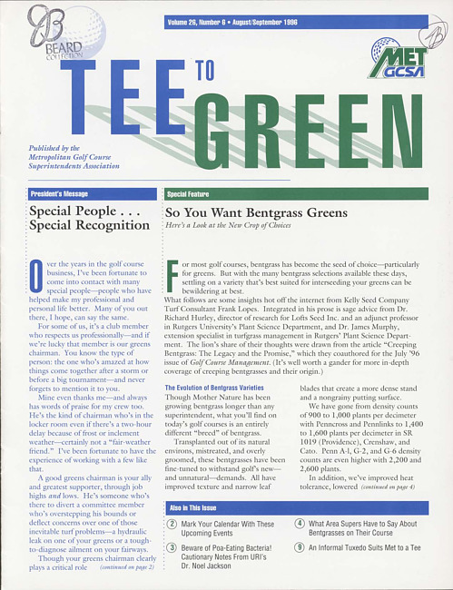 Tee to green. Vol. 26 no. 6 (1996 August/September)
