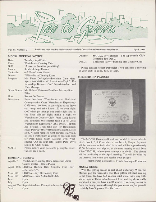 Tee to green. Vol. 3 no. 2 (1974 April)