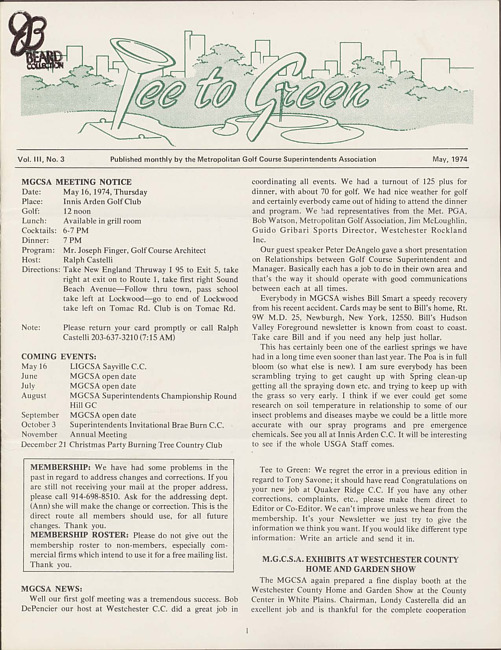 Tee to green. Vol. 3 no. 3 (1974 May)