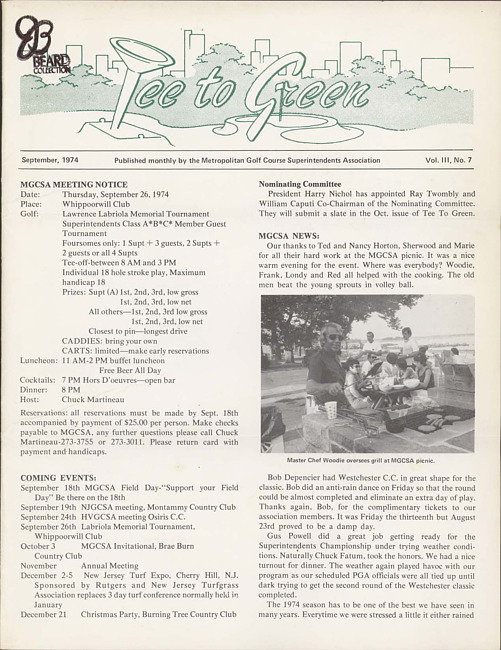 Tee to green. Vol. 3 no. 7 (1974 September)