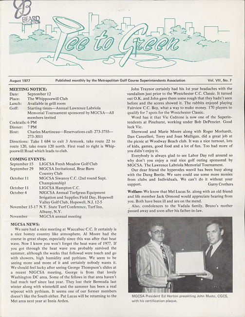 Tee to green. Vol. 7 no. 7 (1977 August)