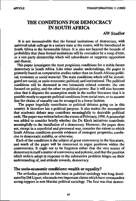 The conidtions for democracy in South Africa