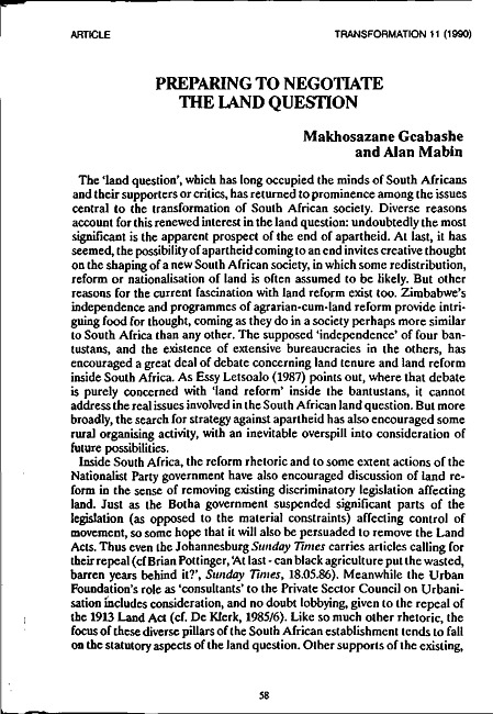 Preparing to negotiate the land question