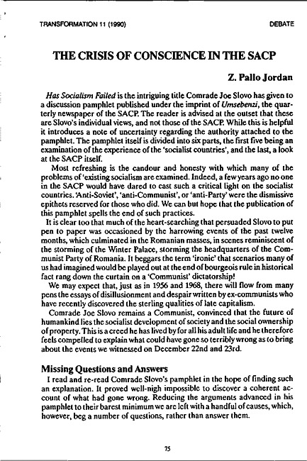 The author critiques Joe Slovo's recent article "Has socialism failed" focussing on the inadequacies of Slovo's discussion of Stalinism.