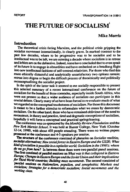 A recent major conference in New York saw intellectuals from many countries consider the crisis in socialism and debate its future. The author was there and summarises and discusses some of the most salient contributions including detailed accounts of two SACP speakers, Joe Slow and the late Mzala.