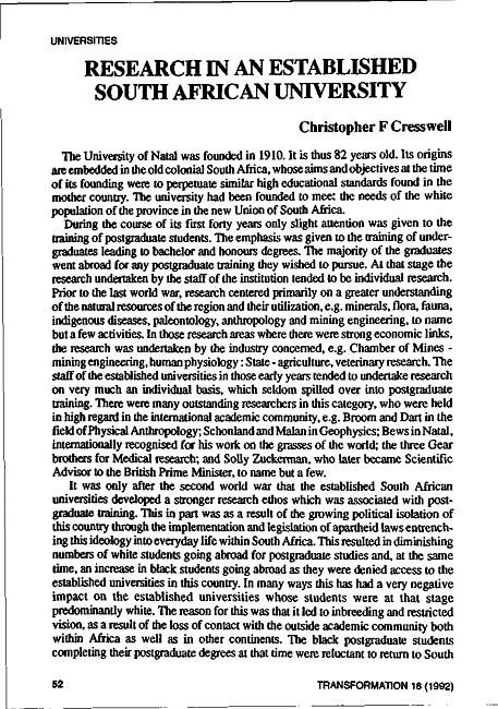 Cresswell, C. F. (Christopher Frederick), 1933-1998