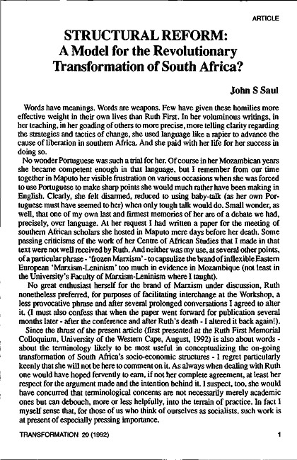 Structural reform : a model for the revolutionary transformation of South Africa?