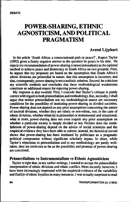 Power-sharing, ethinic agnosticism, and political pragmatism