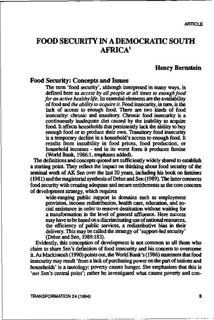 Food security in a democratic South Africa