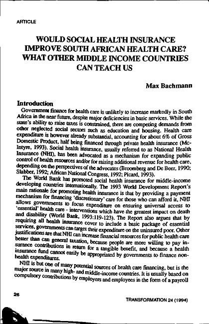 Would social health insurance improve South African health care? What other middle income countries can teach us