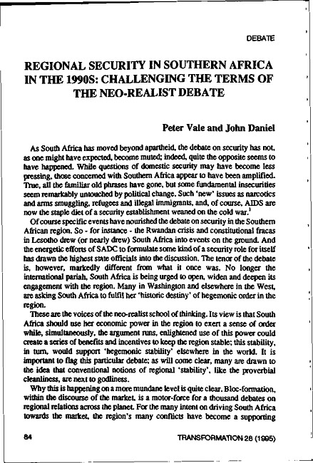 Regional security in Southern Africa in the 1990s : challenging the terms of the neo-realist debate