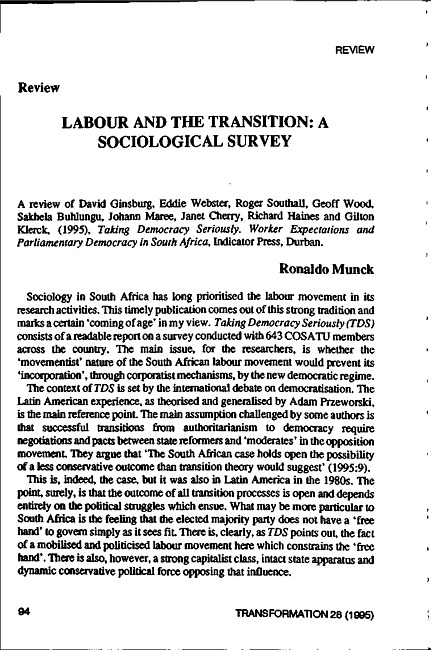 Review of: David Ginsburg et al. Taking democracy seriously. Durban: Indicator Press, 1995