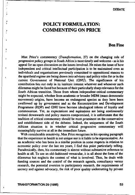 Ben Fine expresses the need for an earlier contribution by Max Price to resolve itself into a more concrete kind of assessment.