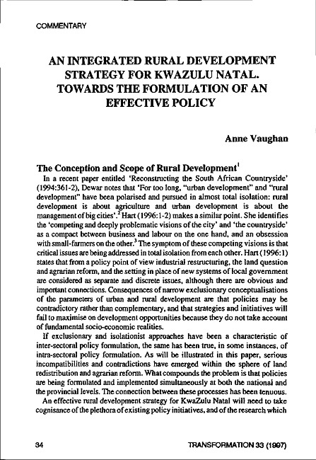 Since 1994, the formulation of new strategies for development has become a top priority. Current literature emphasises the regional and the local. Anne Vaughan argues for the effective formulation of locally directed strategies in this critical study.