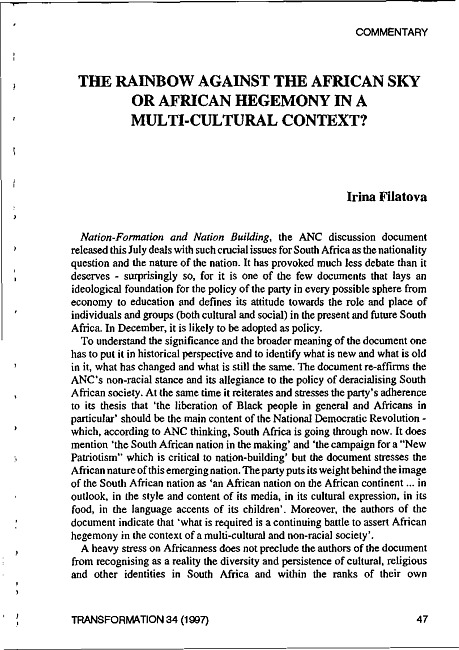 The rainbow against the African sky or African hegemony in a multi-cultural context?
