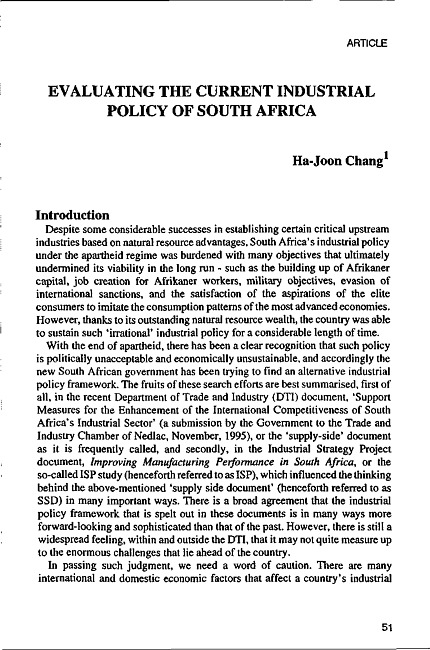 Industrial policy must play a central role in a dynamic development strategy and the experiences of South and East Asia rank high in debate about carrying them through. Ha-Joon Chang provides a critical and comparative look at how South African efforts can be evaluated by this measure.