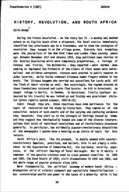 History, revolution, and South Africa