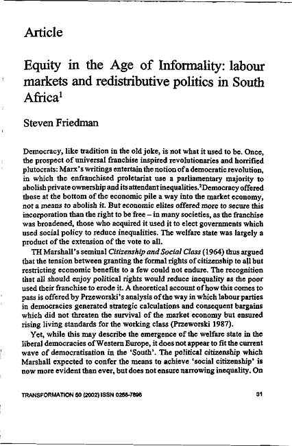 Equity in the age of informality : labour markets and redistributive politics in South Africa