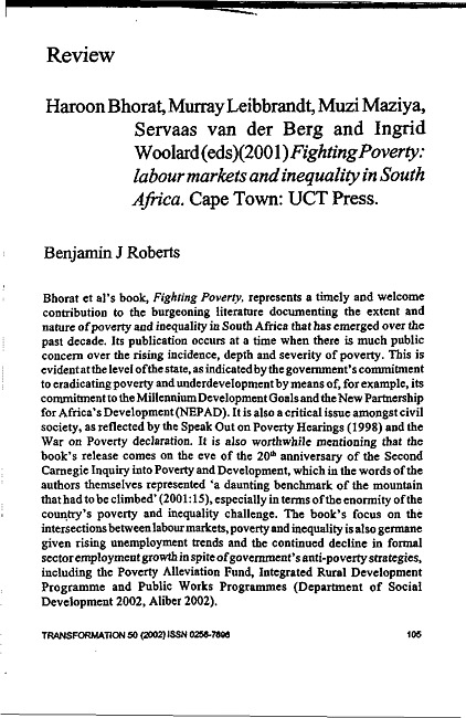 Review of: Haroon Bhorat et al. (eds). Fighting poverty. Cape Town: UCT Press, 2001